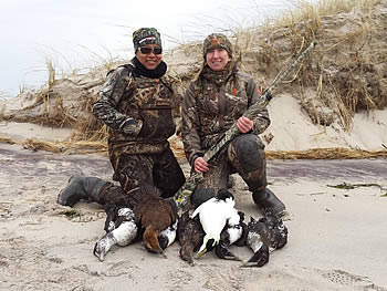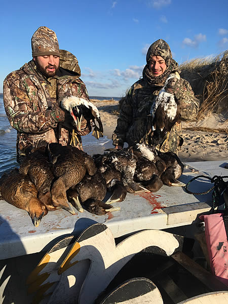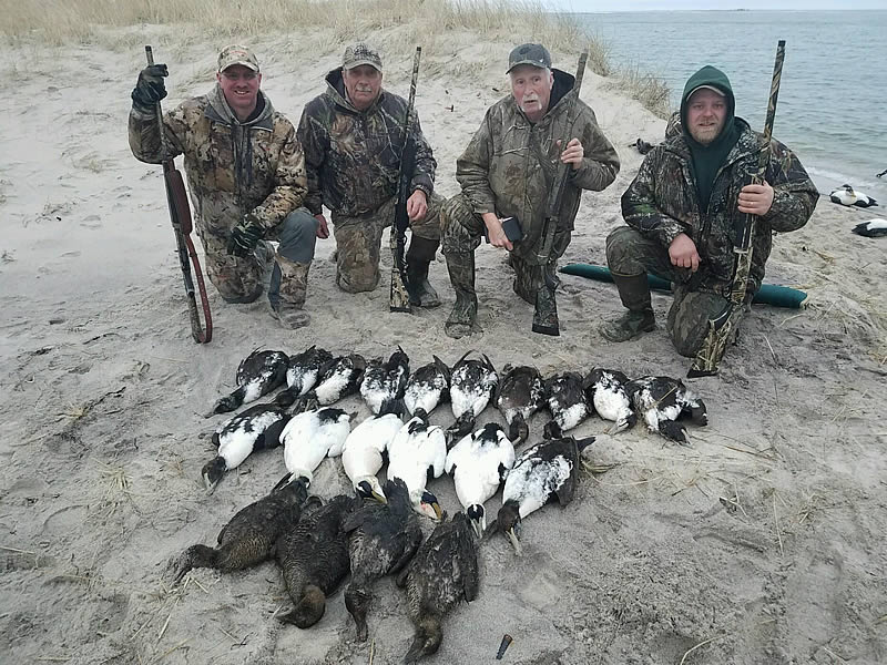 Our primary species are common eider. We frequently harvest common & surf scoter, buffleheads, old squaw and atlantic brant. We hunt primarily from layout blinds on the beach to give you the best opportunity for success, and we also have a 2 man layout boat coming in the Fall of 2017